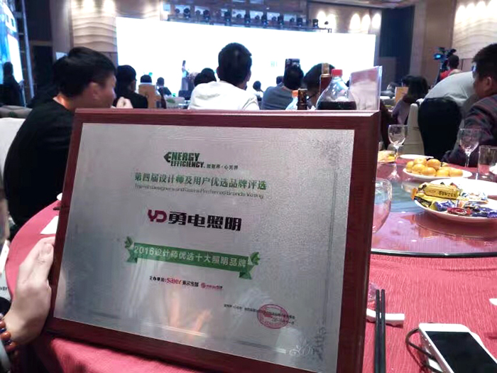 燈光璀璨的大廳里,賓客云集,高朋滿(mǎn)座。在全場(chǎng)嘉賓的期待中,第四屆設(shè)計(jì)師及用戶(hù)優(yōu)選品牌評(píng)選頒獎(jiǎng)典禮拉開(kāi)帷幕。本次評(píng)選活動(dòng)歷時(shí)十個(gè)月,受到了業(yè)內(nèi)相關(guān)人士的高度關(guān)注,勇電照明榮獲2016設(shè)計(jì)師優(yōu)選十大照明品牌。