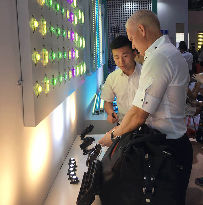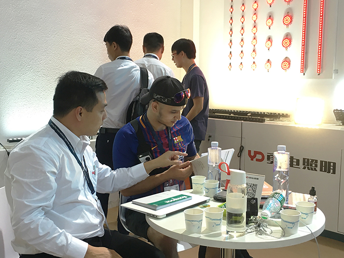 展位內(nèi),前來觀展的國內(nèi)外客戶絡(luò)繹不絕。董事長徐松炎親自坐鎮(zhèn),帶領(lǐng)銷售精英和技術(shù)尖兵向大家詳細介紹了公司最新、最具優(yōu)勢的產(chǎn)品以及互相探討了LED照明未來的發(fā)展動向。
