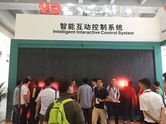 展位人氣集中的地方,當(dāng)屬臨近走道的智能燈光互動區(qū)域。墻體立面LED顯示屏通過勇電體感互動控制系統(tǒng),只需一個簡單的肢體動作即可改變屏幕燈光的的變化,這種新奇有趣的玩法吸引著來往的觀眾參與其中,給現(xiàn)場觀眾帶來不一樣的燈光體驗,同時也是勇電品牌實力的見證。